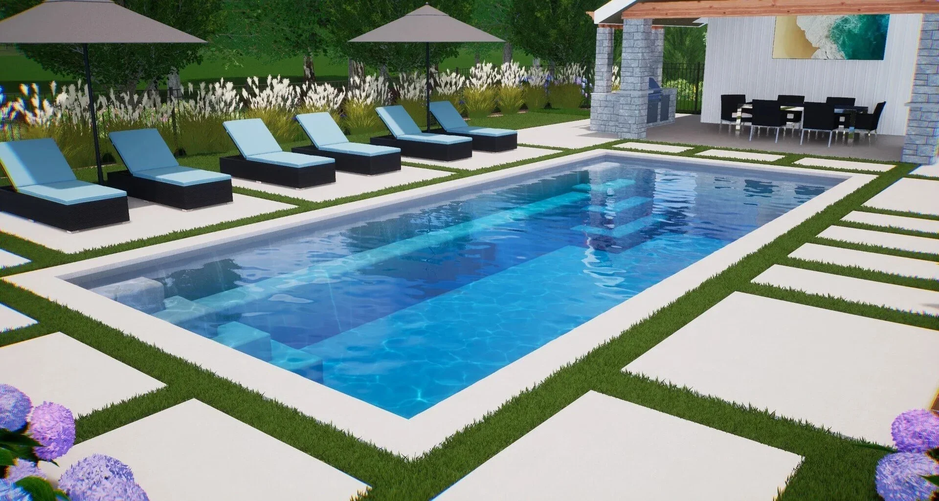 Textured pool steps, tanning ledge, and floor